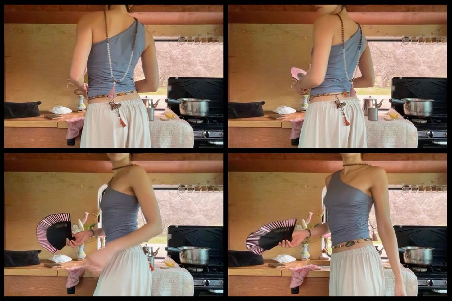 It’s a lot I’m experimenting with. They fall into a few themes: following charm, precision in simplicity, home as a spell. I currently move around a lot and reside mostly in nature. A divine love has also entered my life and I’ve been dreaming it up with him in new places and spaces. I don’t actively work right now, but I still create every day. Hoping to actually produce something outside of my little world, but for now, I’m enjoying building it.