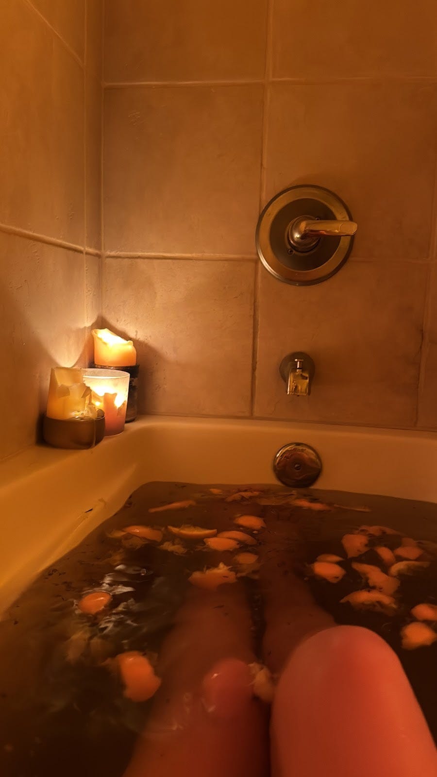 Baths. I spend a lot of time in the bath. I often add baking soda, Epsom salts, niacinamide, salicylic acid, Celtic sea salt, orange and lemon peels, as well as herbs. The herbs usually include rosemary, rose, chamomile, blue lotus, calendula, and lavender. I always feel better when I have at least a few baths a week and will sit in one for 2-3 hours most of the time.