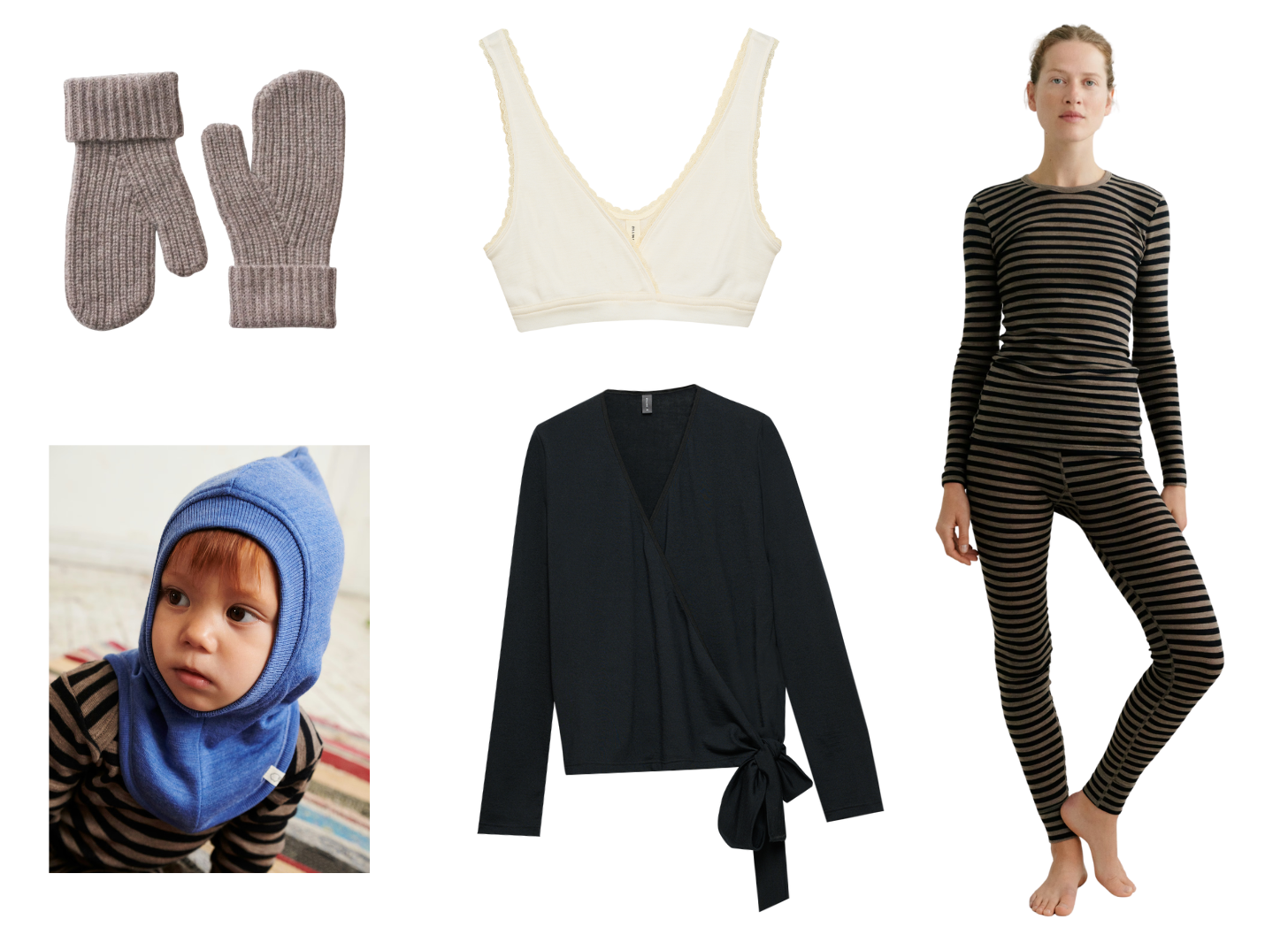 You really can’t go wrong with anything here. Honorary mentions: the Merino Wool Wrap Top ($120), Merino Wool Pointelle Tank Top ($50), and Merino Wool/Silk Bralette ($62). All of these are basically the same price as Intimissimi, just way better quality. They even do merino wool activewear and baby balaclavas.
